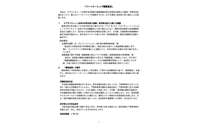 1. サプライチェーン全体の共存共栄と規模・系列等を超えた新たな連携