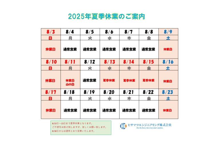 2025年夏季休業日のご案内